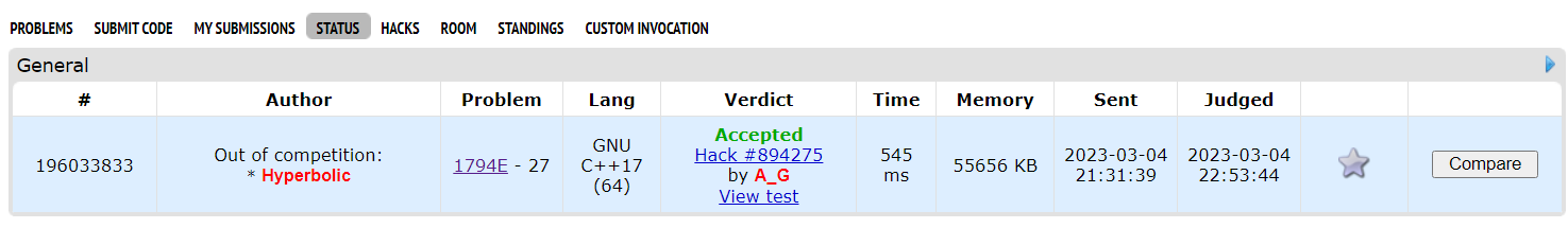 4) 절대 오버플로우를 이용한 해시를 하지 마십시요. 몇몇 PS 블로그등에서 오버플로우가 일어나도 어짜피 같은 문자열이라면 오버플로우가 일어나는 것도 똑같을테니 결과값은 변하지 않는다, 라고 말하고 있습니다. 이 말은 사실입니다 - 오버플로우가 일어나도 결과값이 같으면 두 문자열은 높은 확률로 같겠지요. 하지만 이 방법은 악랄한 TC 제작자에 의하여 저격 TC를 맞고 틀릴 가능성이 매우 큽니다. 심지어 $p$를 998244353등 유명한 소수를 사용했을때보다 틀릴 가능성이 아주 큽니다. 그러므로 절대 오버플로우를 이용한 해싱을 하면 안됩니다.